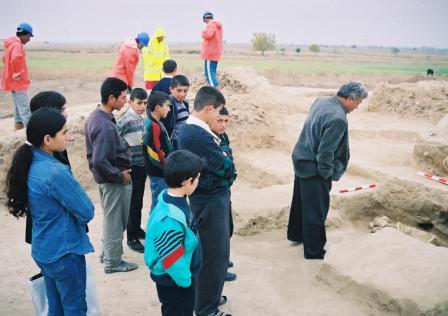During work on the BTC pipeline in Azerbaijan, the local communities were always very interested in the archaeological process. At all the sites, close to modern settlements, it became a standard practise to open the site up to the local schools and others from the community to explain the process being followed and the results of the work.